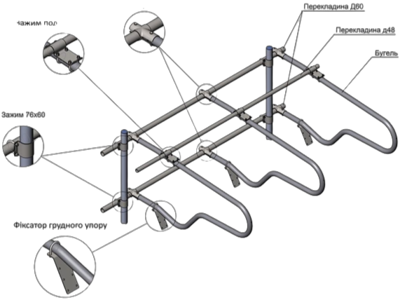 Для поділу зон по групах тварин використовуються хвіртки і обмеження скотопрогонів, які збираються з універсальних елементів кріплення і відрізняються міцністю і розмірами – можуть бути простими і посиленими.