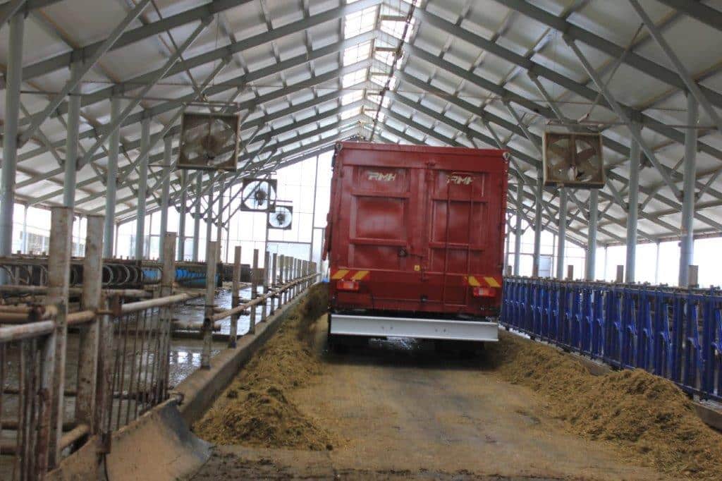 ✓ Зносостійкі поверхні з нержавіючої сталі в коробці доставки (опції 3CR12). ✓ Подрібнювальні шнеки для стабільного потоку та чистого розвантаження. ✓ Рухома підлога з подвійними надміцними ланцюгами та автоматичним реверсом з датчиком навантаження. ✓ Двосторонні конвеєри (кабіна керує обома сторонами) для точного та рівномірного розподілу бункерів. ✓ Герметична верхня кришка з гідравлічними циліндрами для збереження свіжості корму час руху. |